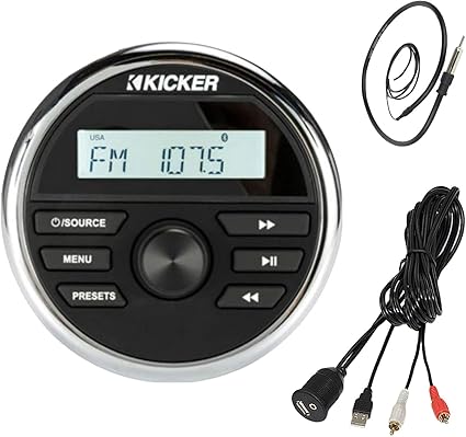 Amazon.com: Kicker Marine Boat Yacht Gauge Style AM/FM Radio Stereo Receiver Media Player Bundle Combo with Enrock USB/AUX to RCA Interface Mount Cable + 22" Radio Antenna: Car Electronics